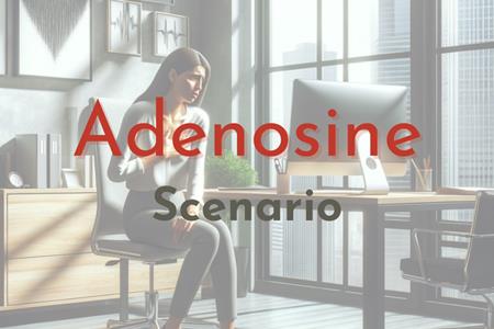 Focused SVT scenario showing adenosine use in managing supraventricular tachycardia. Designed for practical class discussions.
